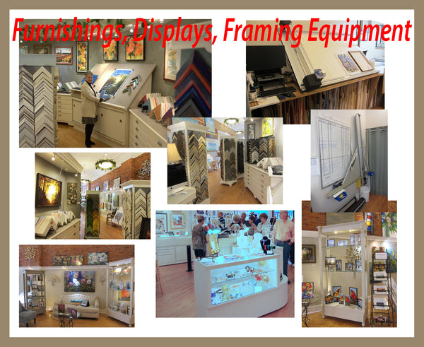 Our ecletic collection of store furnishings, plus our framing equipment and displays are available for purchase.