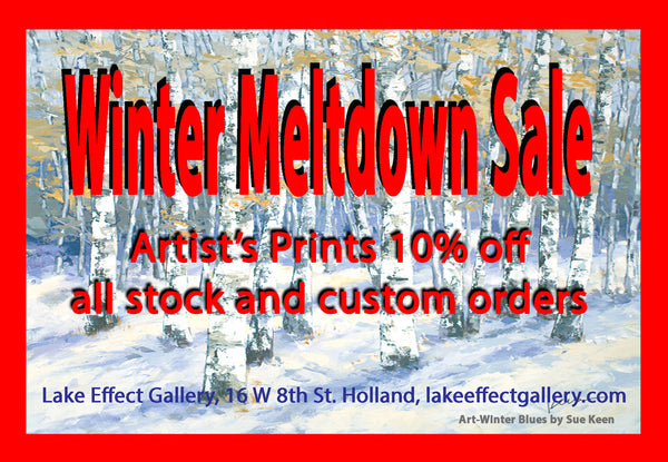 Downtown Holland's ICE FESTIVAL is next weekend. GET A 10% MELT DOWN PRICE ON ANY AND ALL PRINTS (giclees) WE OFFER. 1000'S TO CHOOSE FROM. All artist's giclees (prints) not framed, will be 10% off including special order. We're also offering 10% your custom picture frame if you choose to work with Deb on the perfect combination to make the piece your own.