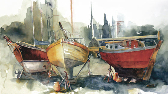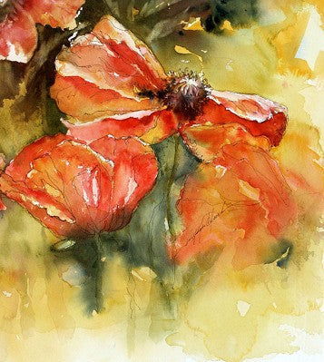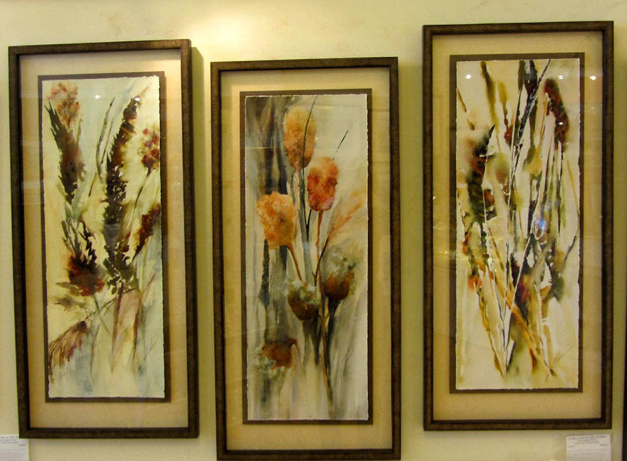 My colors of choice still, years later, are muted, neutralized and yet vivid. I strive for a fluid flow of color and a high contrast of values in my work. I enjoy allowing the media to have a life of its own (this can result in some real messes on occasion), but what emerges from puddles, water blossoms, misting, and spontaneous strokes of the brush adds excitement and an adventurous mood to my work. I want to capture a viewer by striking an emotional chord that takes them back or forward to a timeless memory of scent, color, warmth and relationships. Typically I cycle through my favored subject matter almost yearly; garden blooms, aged water vessels, stucco and tile streetscapes and childhood adventures.