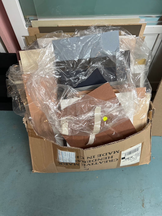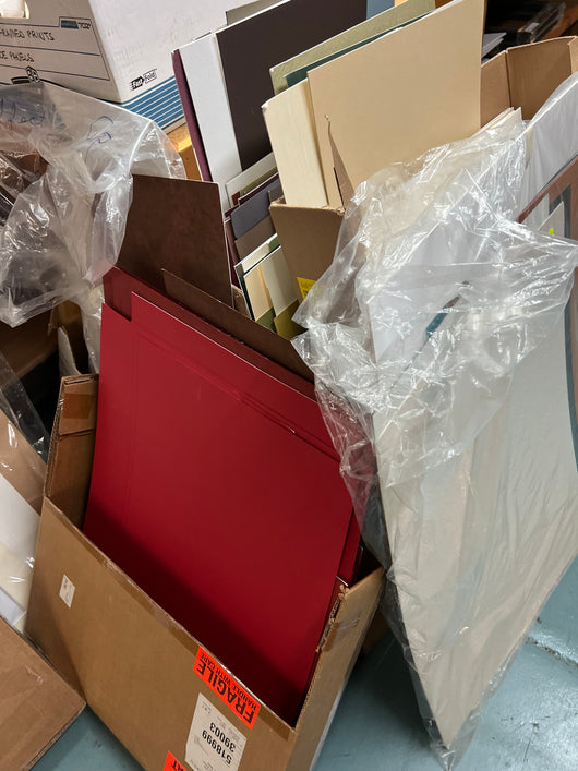 Mat board - partial sheets, mixed sizes. All archival, many specials including fabrics and 8 ply. Multiple lots